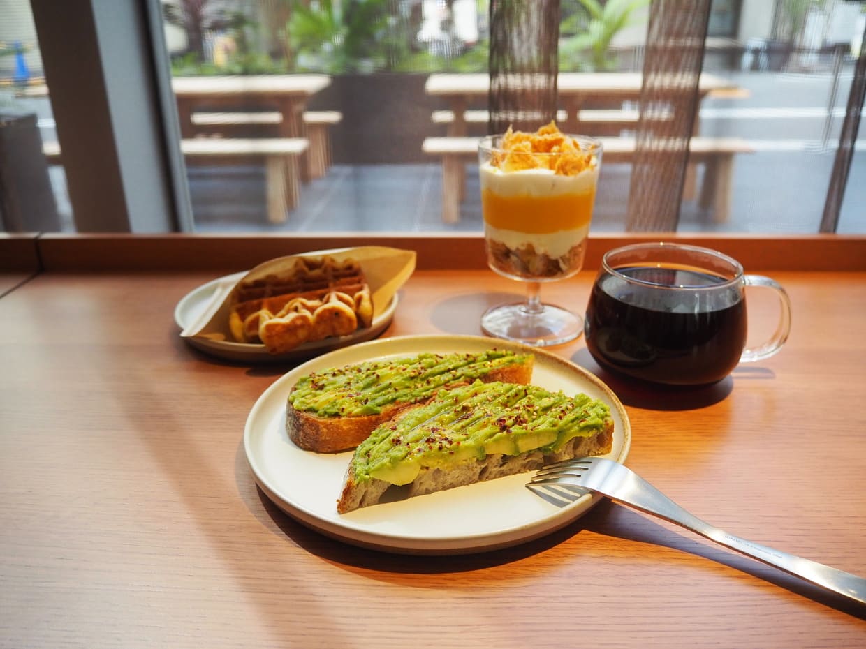 さらに、「リエージュ ワッフル」や「シーズナルパフェ」をはじめコーヒーお供にぴったりのスイーツに加え、フードには大阪エリア初となるパンメニューも。