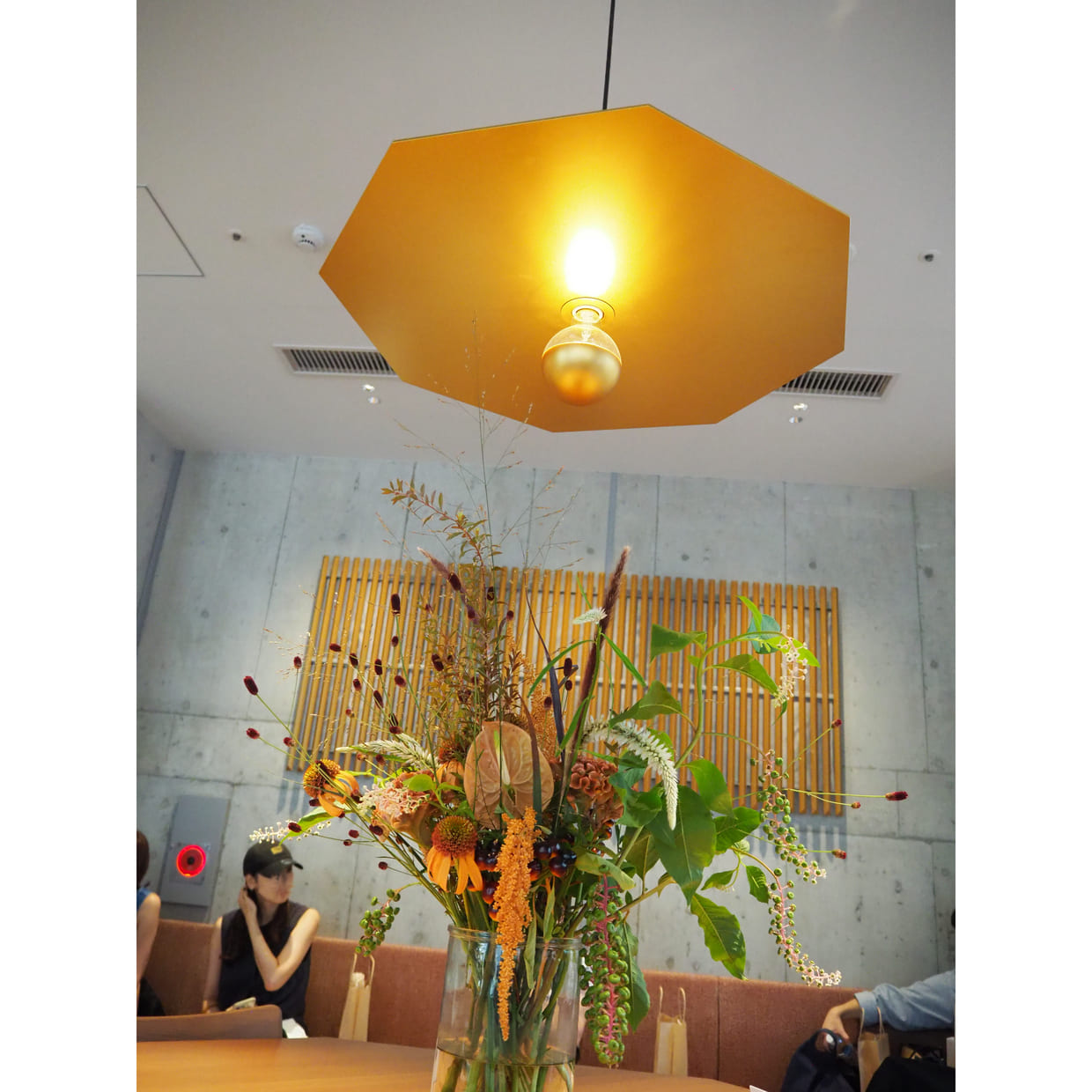 高い天井に大きく窓が開けた店内は、コンクリートの重厚な質感のなかに、木製の家具や和紙の照明など温かみのある素材が調和。
