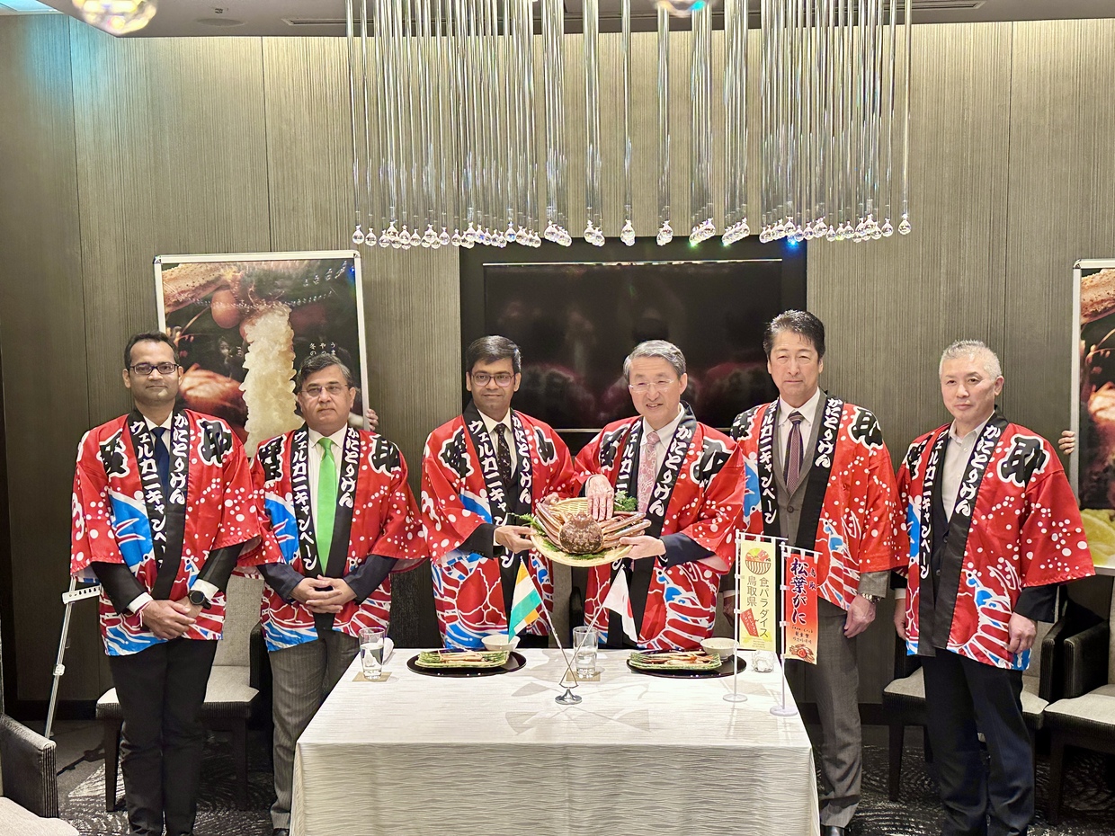 この日は、鳥取県食材の今後の輸出ビジネスに期待の持てるインドより、在大阪・神戸駐日大使のチャンドル・アッパル氏も招かれ、鳥取食材を実食。松葉ガニを味わったチャンドル大使は満面の笑みで「エクセレント・デリシャス!」とその味を讃えます。「松葉がには食通に好まれると聞いていましたが、納得の美味しさですね」と。