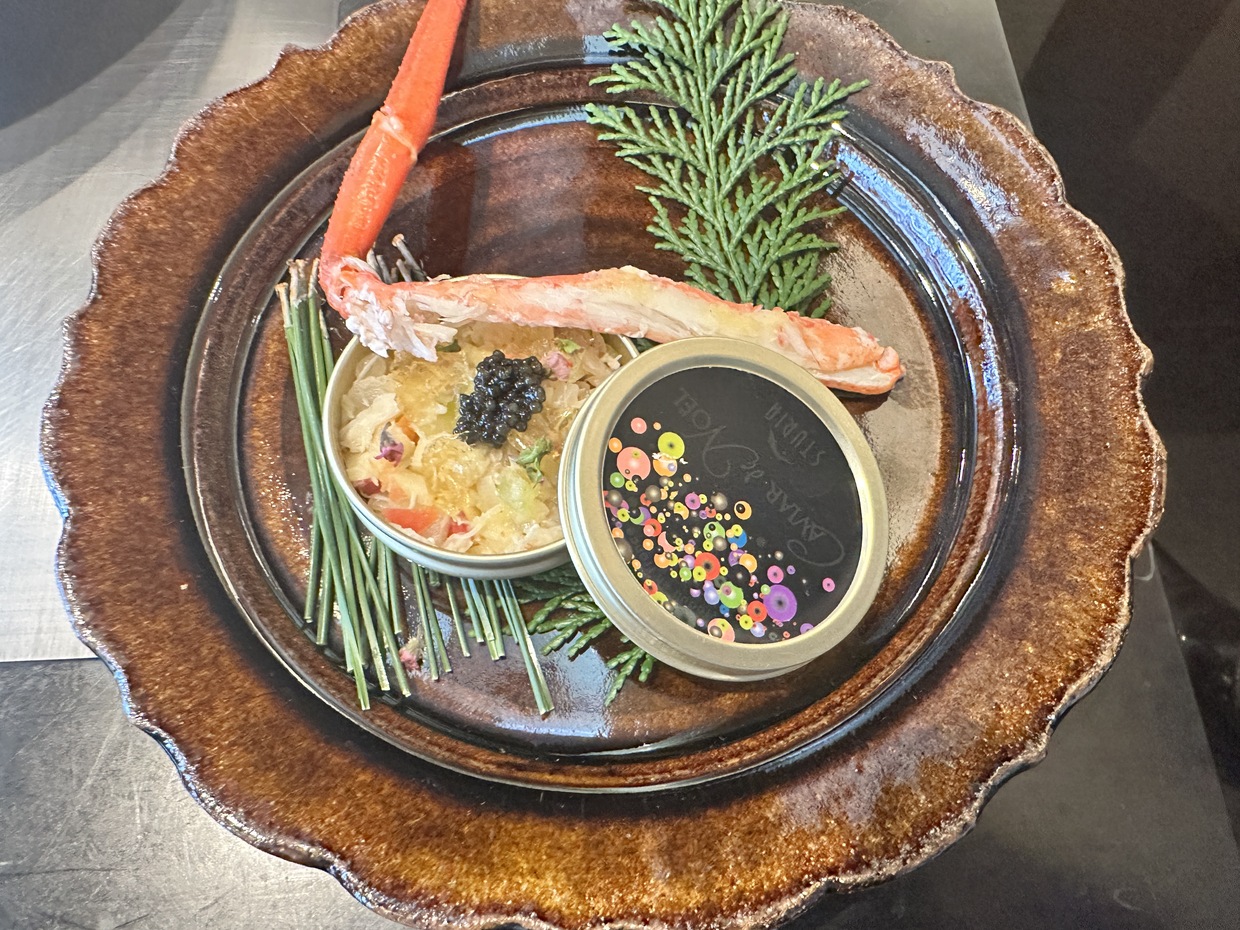 紅ズワイガニのタルタル仕立てに始まり、冬の日本海のご馳走「大和しじみのムースを詰めたのどぐろの蒸し焼き」など。
