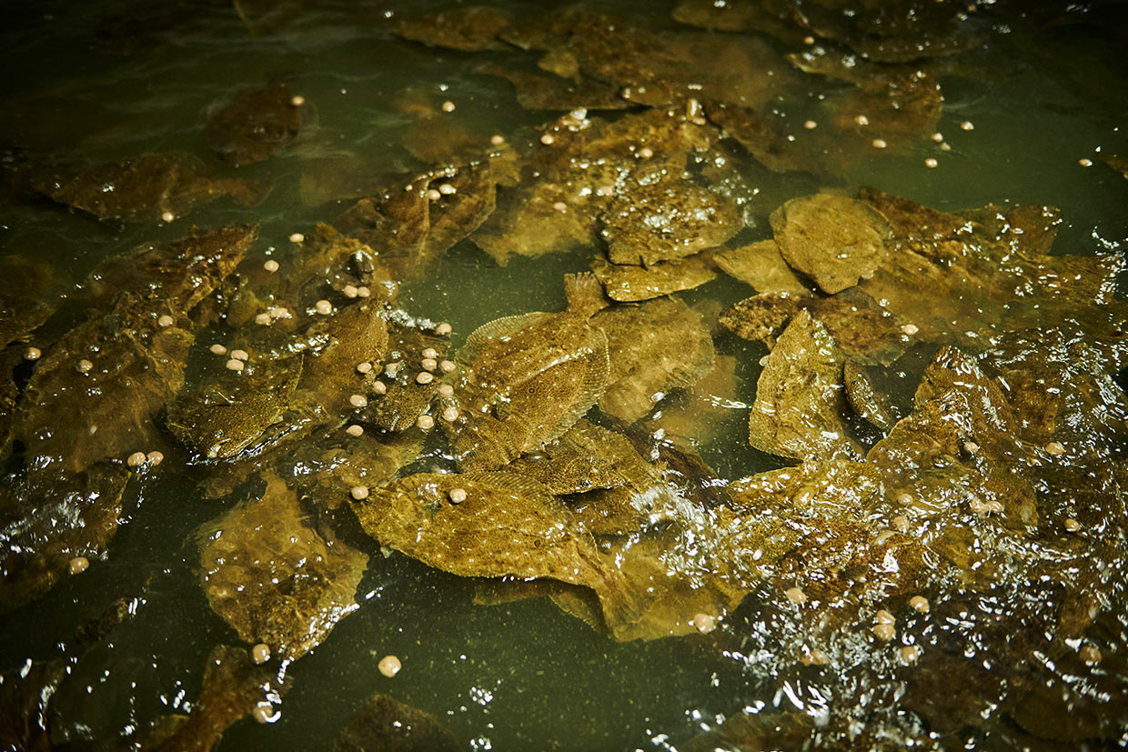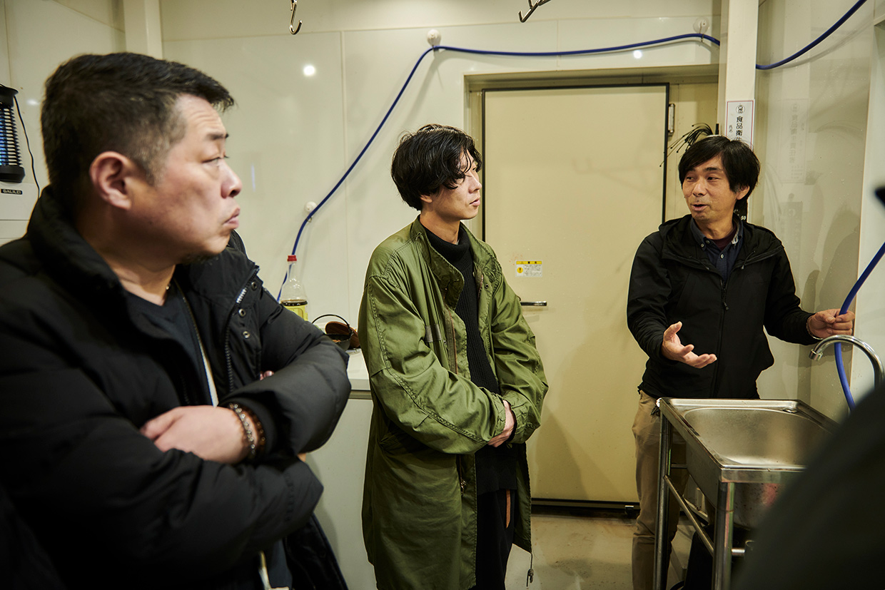 次に向かったのは小浜市の『小浜海産物株式会社』。完全無投薬ヒラメの陸上養殖に成功した総合水産会社だ。ブランド名は八百姫(やおひめ)ひらめ。酸素ナノバブルで海水を殺菌、水質管理を徹底しているため、利用した海水は元よりきれいな状態で海に返している。歯ごたえの良い身質に育つ高タンパク・低脂質のオリジナル飼料を求めて、我れ先に飛び跳ねる様子にシェフたちもびっくり。「天候に左右されず、安定的に出荷できる点もメリットですね」との感想も聞かれた。