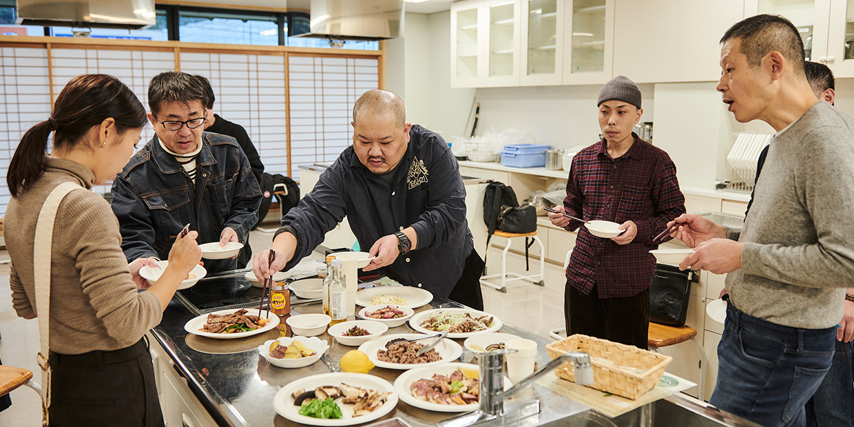 各地で大切に育まれた食材を手にした一行は、調理設備の整った施設に移動。浮かんできたアイデアを試すための試作&試食会が始まった。