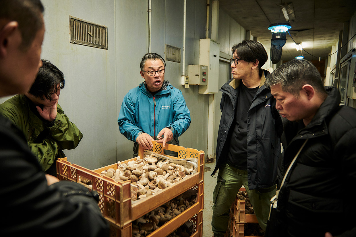 味自慢の椎茸が特産のおおい町は、約90%を山林が占める。町内の『きのこセンター』では、1年を通して椎茸を栽培している。所長の谷崎彰彦さんから「湿度は 60~70%をキープ。“おーいしいたけ”のブランド名で販売しています」との説明を受けつつ、収穫された椎茸を手に取る。「肉厚! 軸も美味しそう」の声が上がった。
