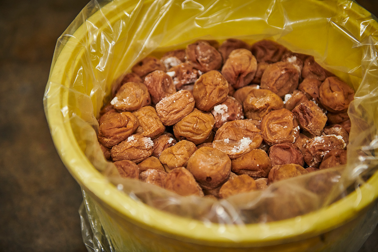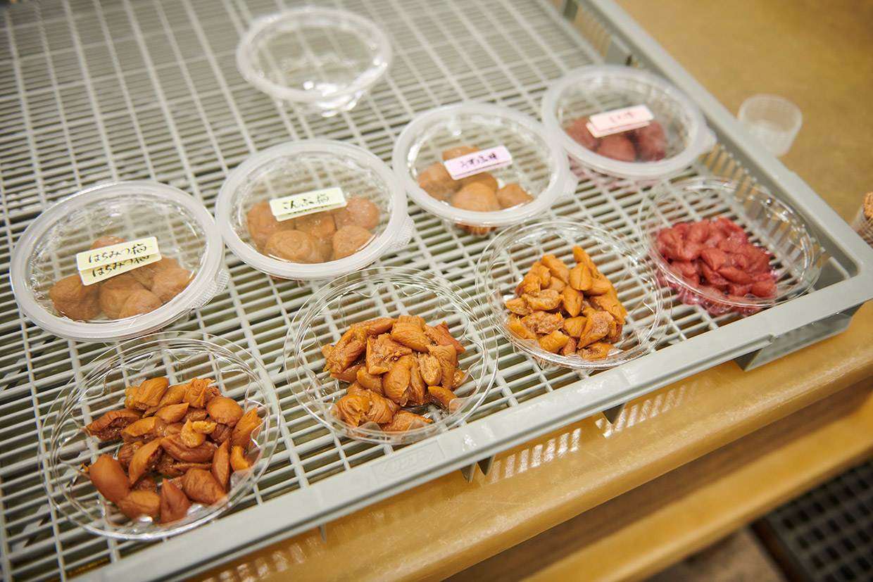 栽培に手間がかかる上、面積当たりの収量が少ないことから全国流通量の約2%しかない希少品種です」。試験開発研究室の野原 悟さんの話を聞きながら、3年ものの塩漬け梅を試食。種の小ささと果肉の量、旨みに一同は目を見張る。「ワインにも合うね」との声も。