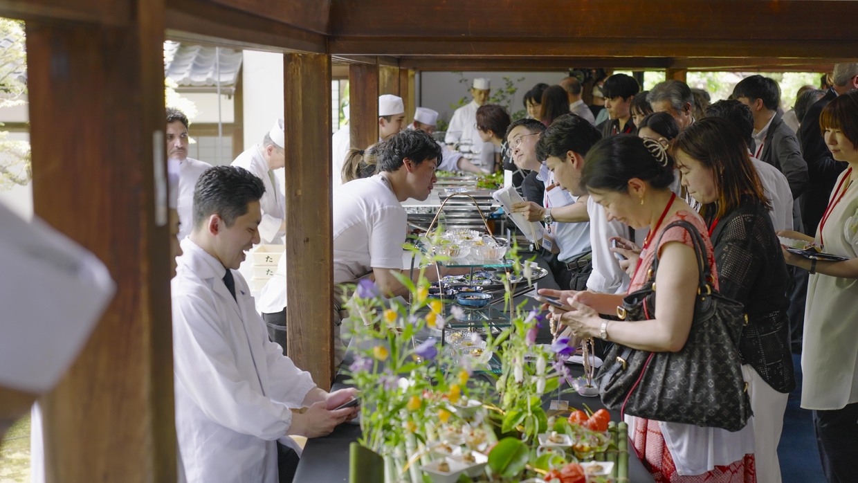 大阪・関西万博に際し6月15、16日の2日間にわたって行われた、日本と世界のトップシェフ による食の国際交流イベント「おいしさでつながる世界」。『菊乃井』村田氏と3人のシェフによる1日目のセッション【前編 】に続き、翌日京都で行われた2日目のレセプションの様子をお伝えします。