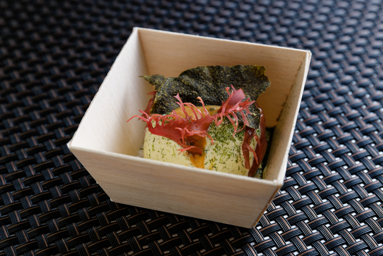 元々海藻は好きではなく、塊の海藻を見て美しいと思えなかったと話した『一子相伝なかむら』中村さん。そういう人にも、食べたいと思わせる見た目の工夫も大事なのではないかと感じたと語る。また海藻を齧った際に、ほのかに煎茶のような香りを感じ「海の中の茶葉なのかなと思ったんです」と、日本料理人らしい、発想も。