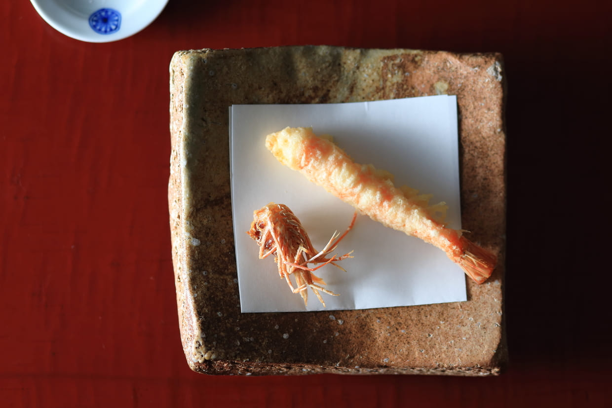 本店や箕面店の会席コースに登場する評判の天ぷらを、ゆったり楽しめるようにと専門店化したのがこちら。箕面店の隣にあった『カフェ&ギャラリー ゆずりは』を同じ建物の2階へと移し、1階のカウンター席をリニューアル。洗練のカウンター天ぷら専門店へと生まれ変わった。