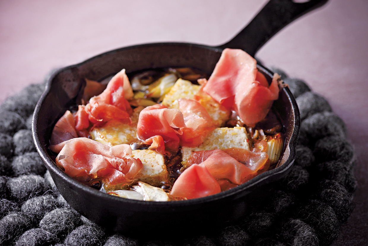 ハモン·コンソルシオセラーノと豆腐のアヒージョ