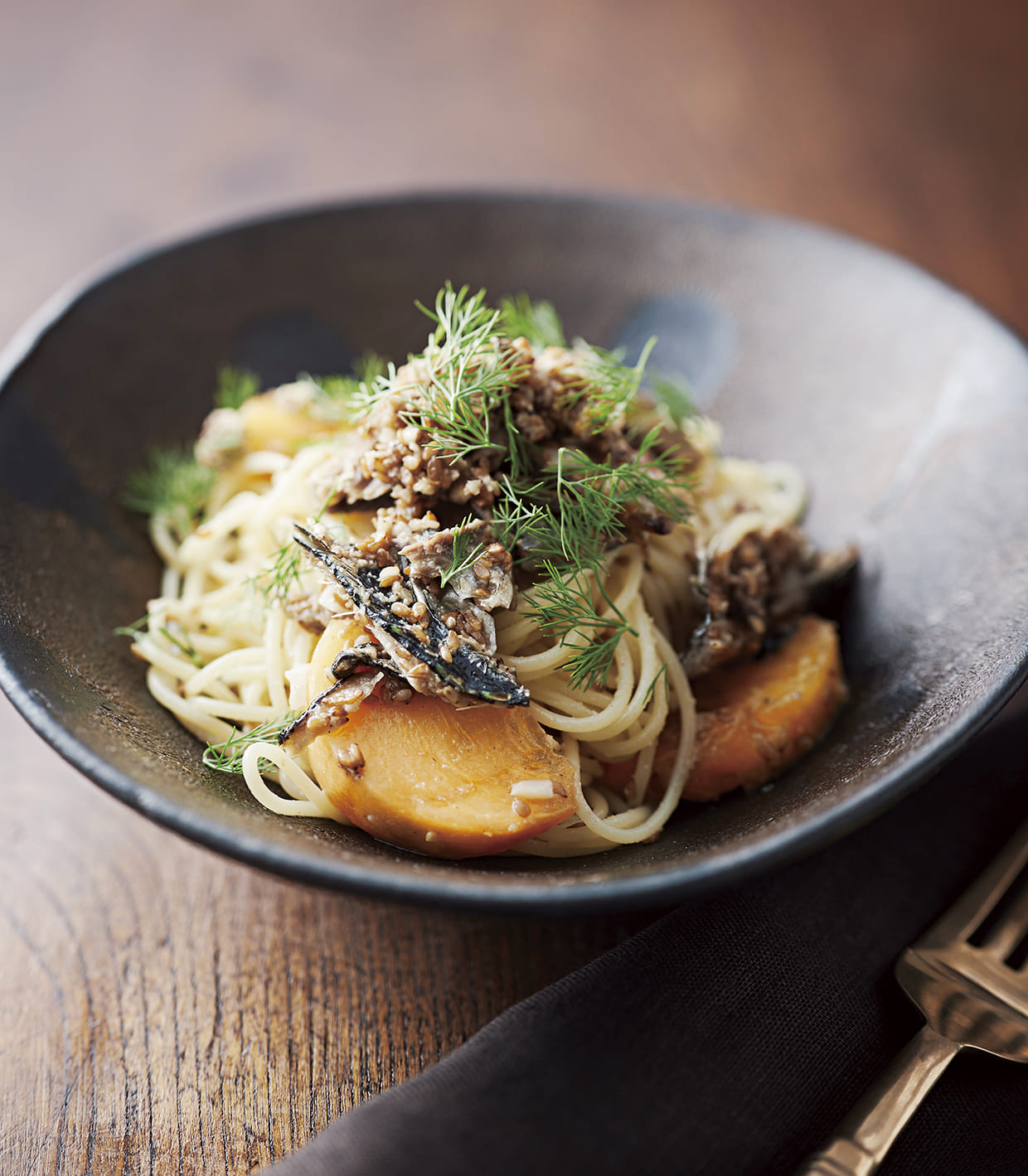 『小料理 花吹雪』の秋刀魚と柿の胡麻和えパスタ