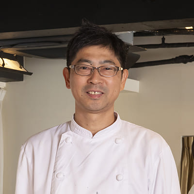 神戸市出身。辻調理師専門学校卒業後、『神戸ポートピアホテル』に入社し、約20年間経験を積む。最上階にあった『アラン・シャペル(現在は閉店)』では6年間務め、フランス・ミヨネーの本店でも研修。2012年に自店をオープン。オマール海老の料理や若鶏のベッシー包みなど『アラン・シャペル』のスペシャリテを継承するほか、神戸産野菜など地域に根付いた食材を活かした料理を提供。マダムの亜矢さんと夫婦でもてなす温かい雰囲気も評判で、近隣のマダムやファミリーを中心に支持を集めている。