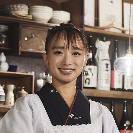 料理上手な祖母の影響で、幼い頃から料理好き。美容系の仕事をしながら独学で料理の腕を磨きつつ、日本酒、特に燗酒にハマり、研究を重ねる。料理の腕を知るご主人からの勧めもあり、2023年自身の店を開店。“手間は愛情”をモットーに、家庭料理にひと手間を加えた和洋中のおばんざいが人気。ジビエハンターから届く鹿肉の一品、「谷町納豆」や自家製のあんこのアテも名物。日本酒の品書きはなく、お薦めの銘柄を的確な温度帯で提案する。各地の日本酒イベントにも積極的に参加している。