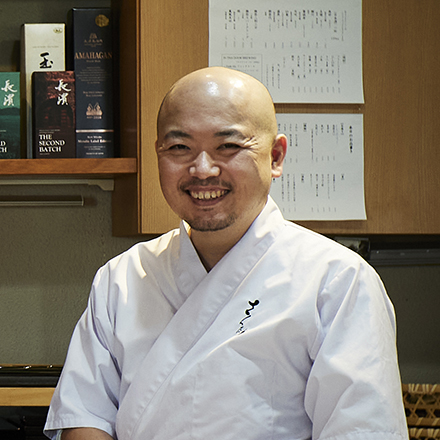 垂水出身。料理人の父親の影響で、高校卒業後に日本料理の道へ。各地の料亭や割烹、ホテルで研鑽を積み、2014年、地元で自身の店を開店。塩屋漁港で鰆を一本釣りする漁師や、神崎郡市川町の有機農家など、同級生から仕入れる食材と兵庫の海や山の恵みを軸にした、ここでしか味わえないおまかせ料理を提供する。特に魚料理に定評があり、カウンターの後ろの生け簀で1日活け越しした鮮魚を、提供直前に締めるお造りは、港町ならではの歯ごたえと鮮度が魅力。また、神戸産クラフトビール「IN THE DOORBREWING」とのマリアージュも提案している。