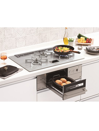 - 「ココットプレート」に①を並べて蓋をし、水なし両面焼グリルに入れる。オートメニュー「焼き魚」・「プレート」、焼き加減「標準」を選択して点火する。