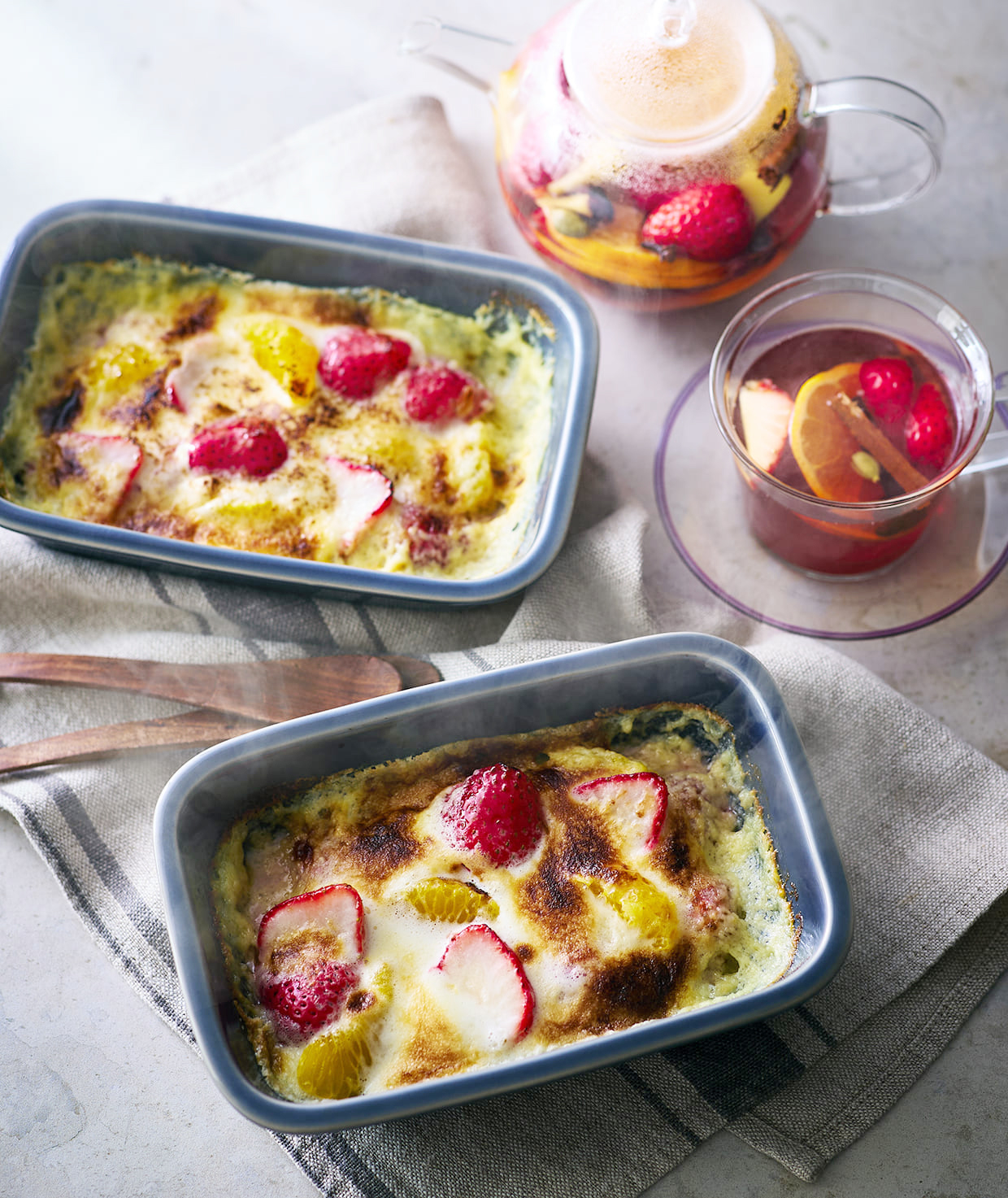 甘酸っぱいイチゴと柑橘が主役のホットデザートをご紹介します。好みでラム酒を加えて大人っぽい味わいに仕上げても。スパイス香るフルーツティーは見た目も華やかでおもてなしのドリンクにも◎。