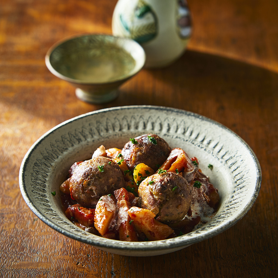 『新奈』の秋刀魚の揚げ団子と根菜のトマト煮