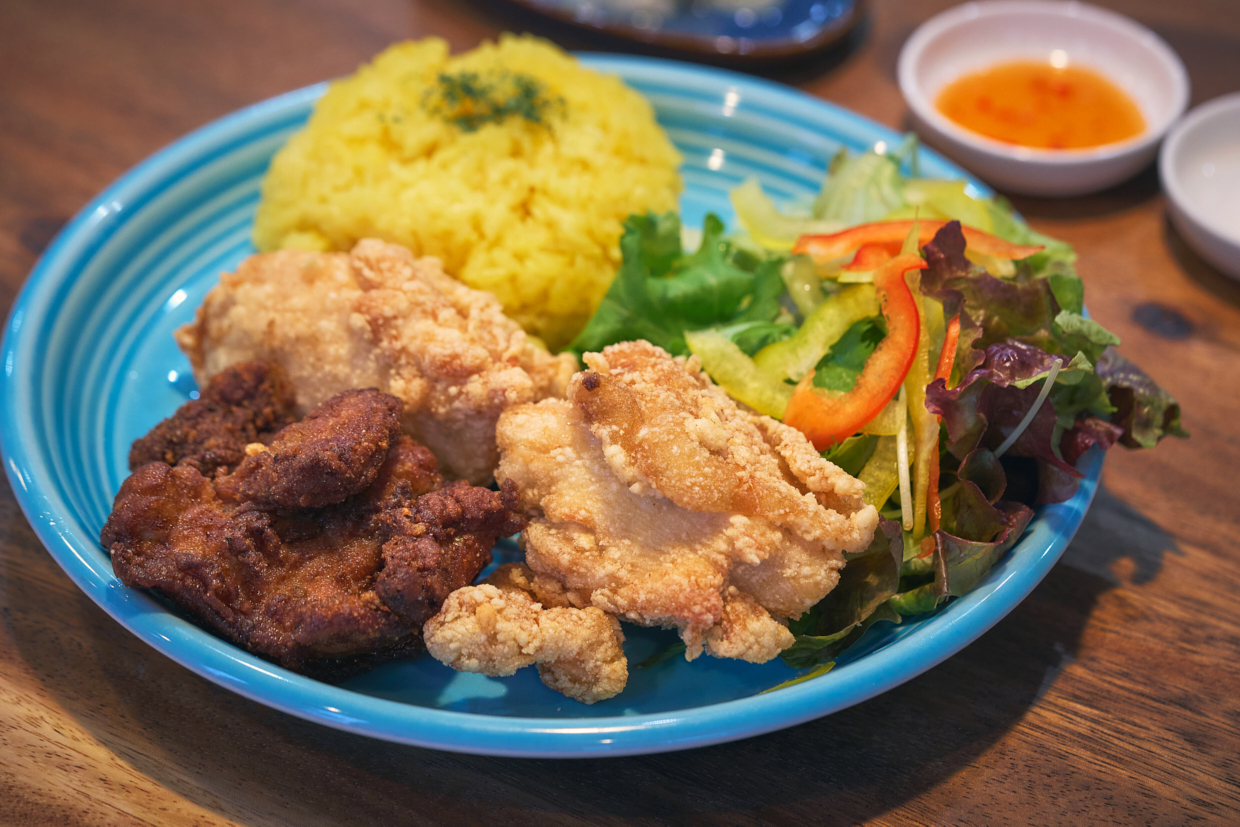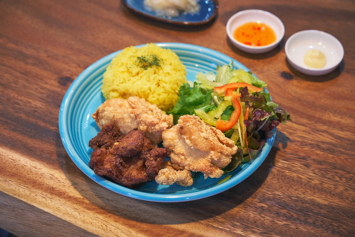 ご飯はターメリックライスであることも六甲の『CHICKEN Heart』から継承したもの。「白ごはんだと、このスパイスが香るフライドチキンの味を一回切ってしまうんですよ。ターメリックライスだからチキンとのバランスが取れる」と多田さん。