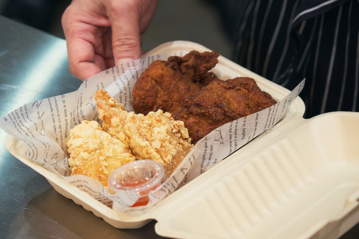 1個が女性の握り拳大くらいの大きさなので、セットを食べると結構ボリューミーで満腹に。さらに冷めても美味しいということで、テイクアウトも人気。ありそうでなかったタイプのフライドチキン。お腹を空かせて訪ねよう。