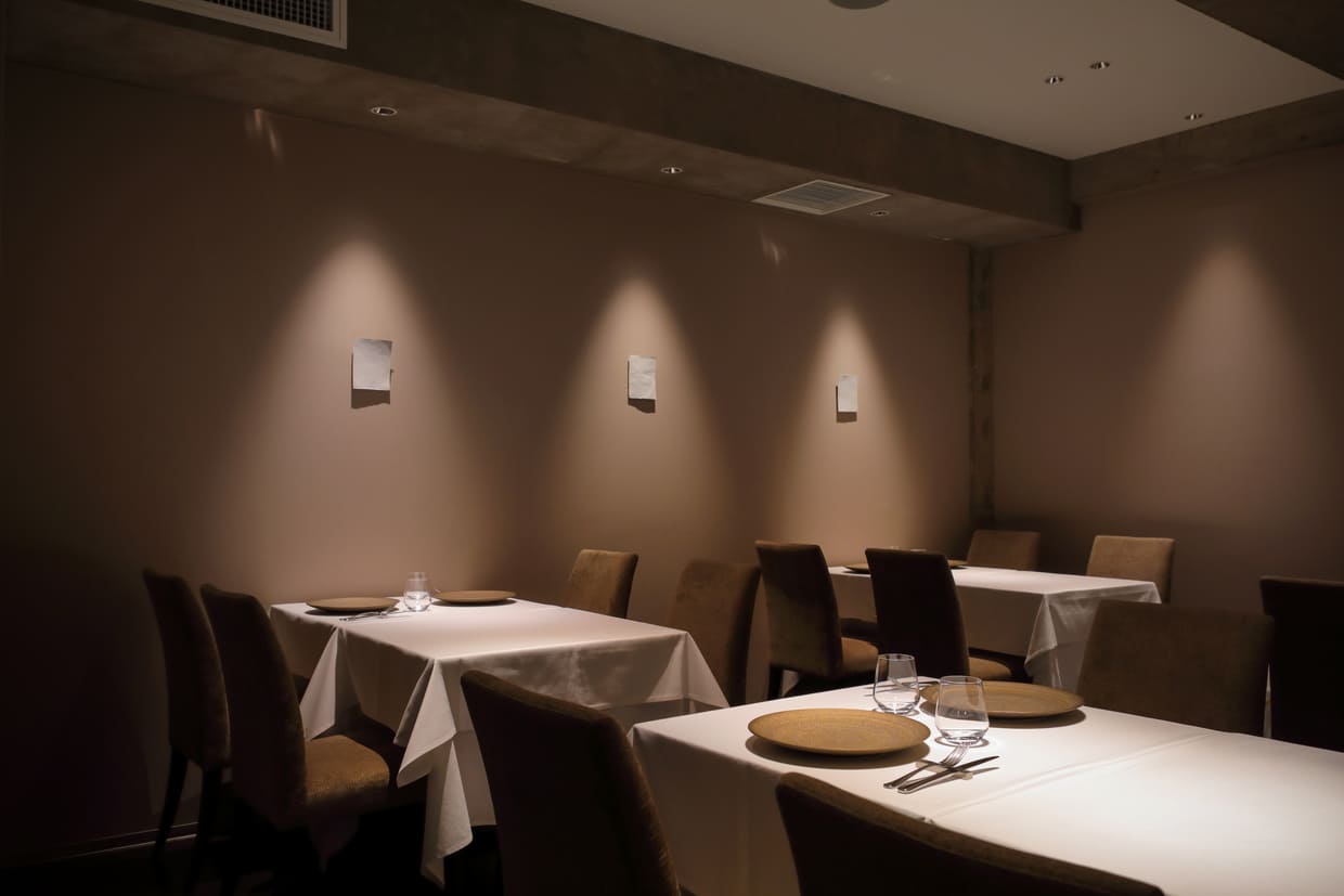 また店内にはカウンター席もあり、実はおひとりさま利用も歓迎とのこと。グランメゾン級の料理を出す店なのに、誰かを無理に誘わずとも1人で気兼ねなく訪ねられるのはありがたい。一方フロアのテーブル席は、記念日デートや接待などにもぴったりのシックな雰囲気。エリア的にも喧騒を離れた落ち着いた場所で、まだ30代のお二人がタッグを組んで粛々と表現する、しみじみ旨い料理と心地良いサービス。自分へのご褒美に、女子会に会食にと、様々な場面で重宝しそうな隠れ家的一軒だ。