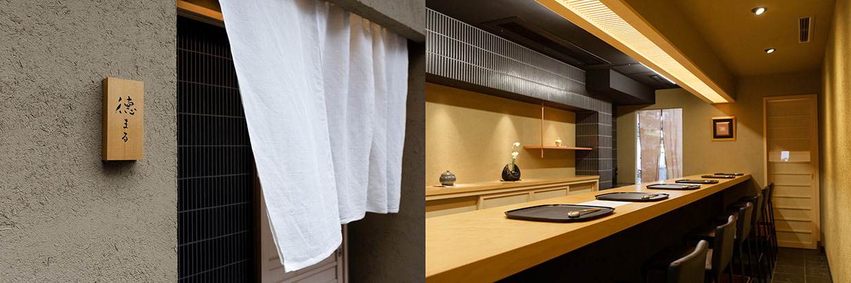 京都市役所前のほど近くにある『德まる』は、初めてのお客向けにコースも用意しているが、約40種の単品の品揃えが大いにそそる。「冷菜・肴」「椀物・温物」「造り」「焼物」「油物」「食事」「甘味」の項があり、その順に食べれば会席のような流れになる。「プリフィックスの会席のイメージで楽しんでいただけたら」と、店主の德丸喬大(たかひろ)さんが気さくに笑う。