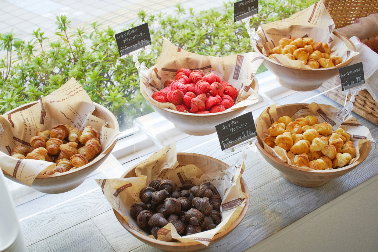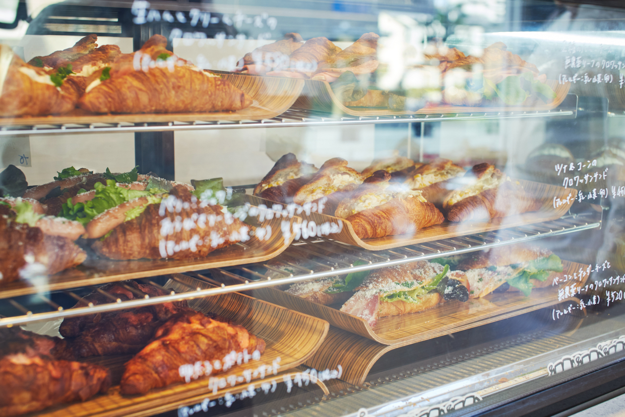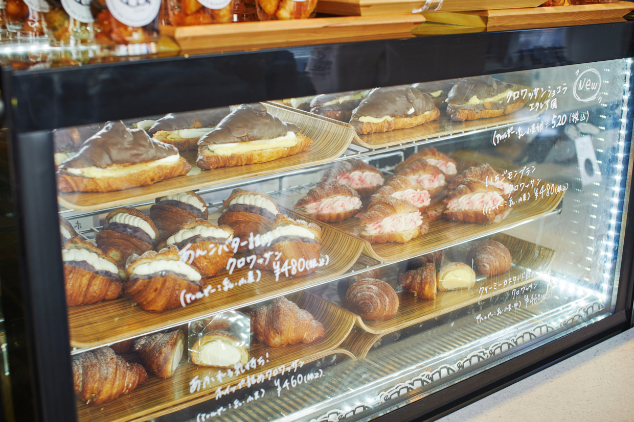 店内に足を踏み入れると「クロワッサン」のバリエーションの多彩さに驚く。おやつや朝食に食べたいスイーツ系、ランチにぴったりのクロワッサンサンド。カラフルなミニクロワッサンまで。あれもこれもと目移りするほどだ。