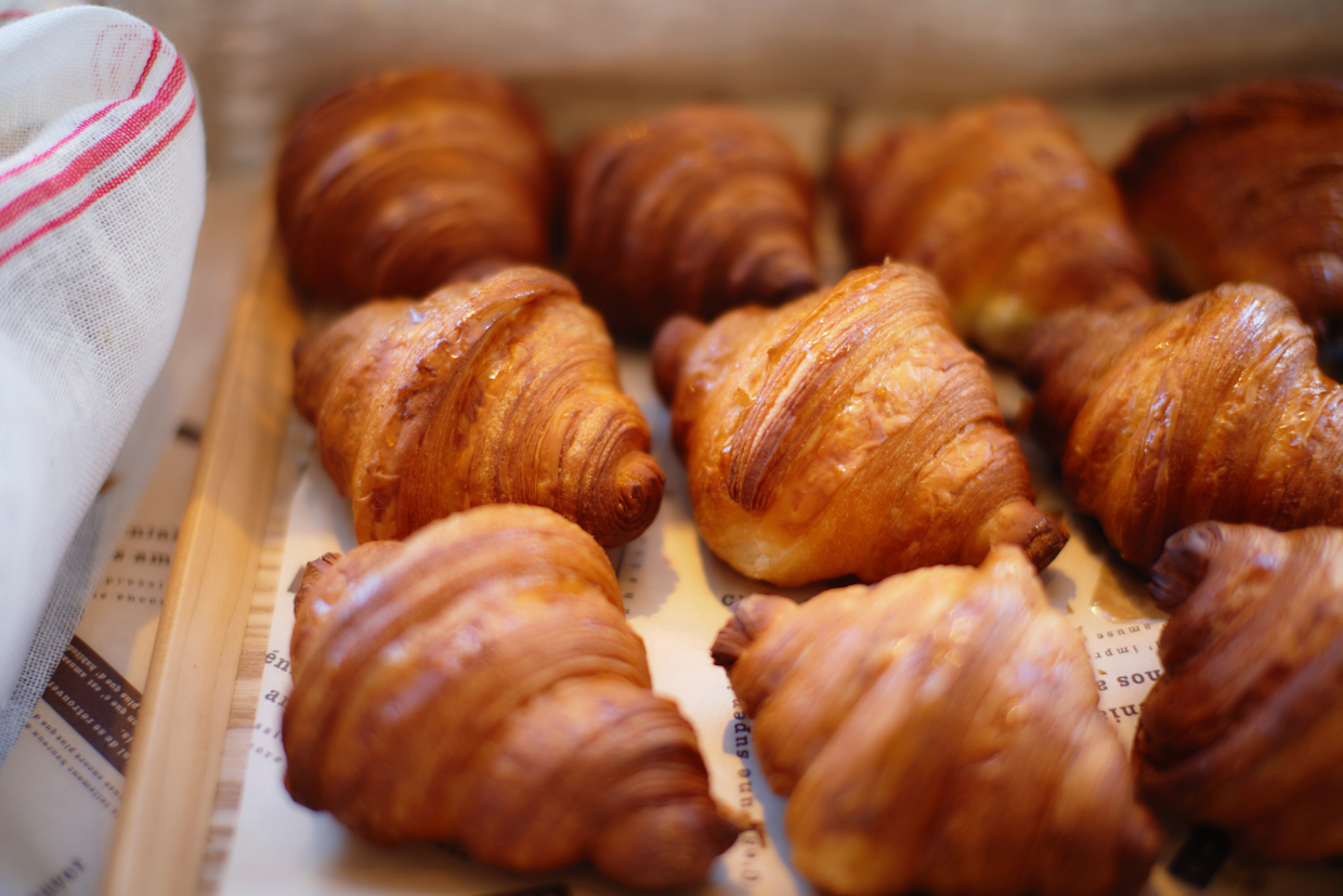 バスケットに山盛りのプティクロワッサンも、小さいながらも美しい層のザクっとした食感と風味。