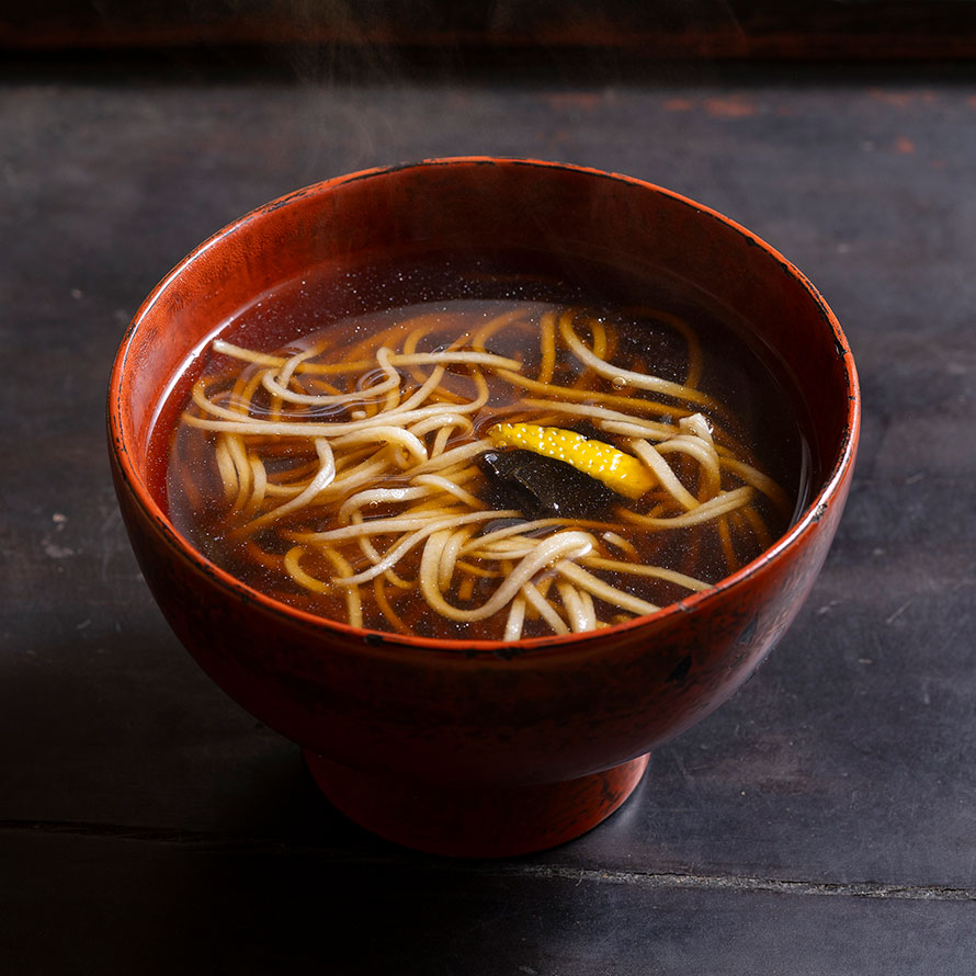 ピジョンを使わなくなったのは、まさにこの頃から。日本人として、国産の食材をもっと知らなければ、と思ったんです。同世代のシェフ仲間に影響を受け、日本のクラフトにも開眼して。店内の土壁を左官職人にお願いし、うつわも作家もので揃え、2024年にリニューアル。そのタイミングで、西洋の食材を封印したんです。湯葉や山菜、川魚、ジビエももちろん国産で。大徳寺納豆や麹といった発酵食材や、黒モジなどの和ハーブ、ゆべしに三輪そうめんと、魅力的な地方の特産物もどんどん取り入れました。