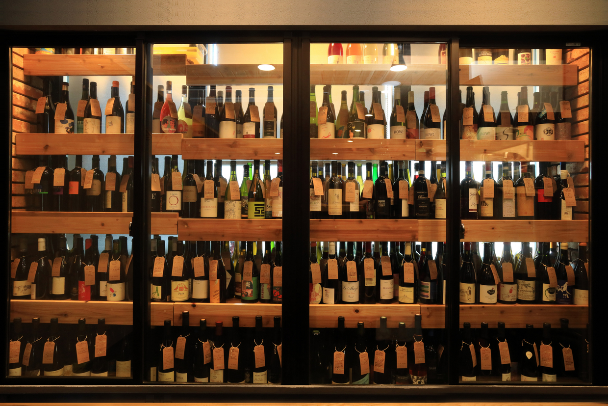 入口近くにでんと鎮座するセラーこそ、『空想コンプリート』の最大の魅力。ずらりと並ぶのは、「気軽にオトナ時間を楽しんでほしい」というオーナー・剛さんのお眼鏡に叶ったボトルばかり。手軽な価格帯のものを中心に、中にはなかなかお目にかかれない珍しいナチュラルワインまで、食中酒に最適なワインが幅広く揃っている。