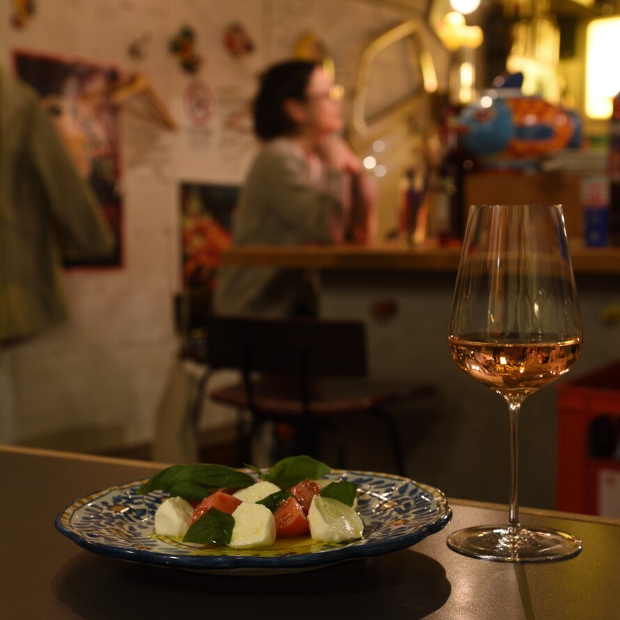 窓の外には街のド派手なネオンが。店の外と中、その強烈なコントラストが日常のノイズを遮断。だから20時を過ぎた仕事帰りや飲み会の後、身体に沁みるナチュラルワインが飲みたくなる。
